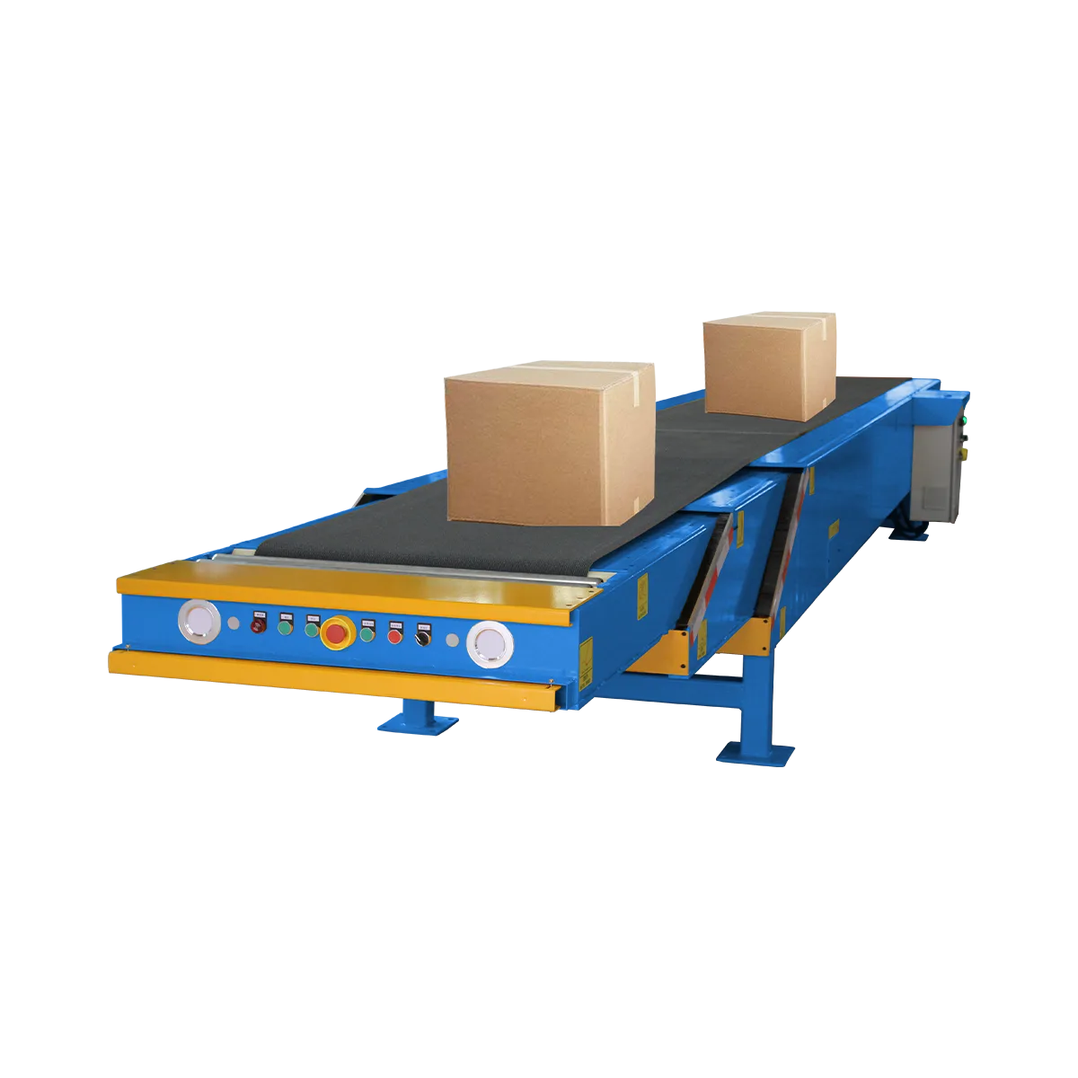 我们的三节伸缩输送机最长可伸入7–9米,能够深入货车和集装箱,实现快速高效的装卸作业。其紧凑的三节设计非常适用于仓库、配送中心和高负荷物流作业,减少人工搬运,提高作业效率。